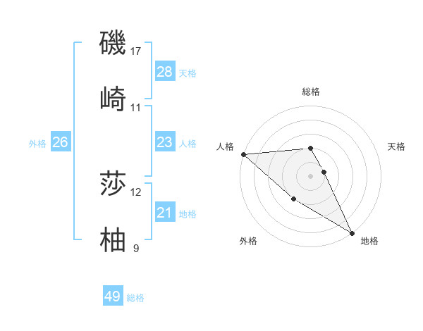磯崎 莎柚さんの総格は49画の2点!