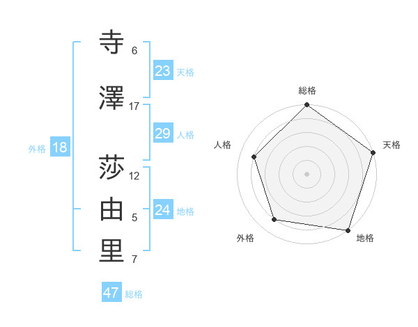 寺澤 莎由里さんを姓名の画数から五運を鑑定