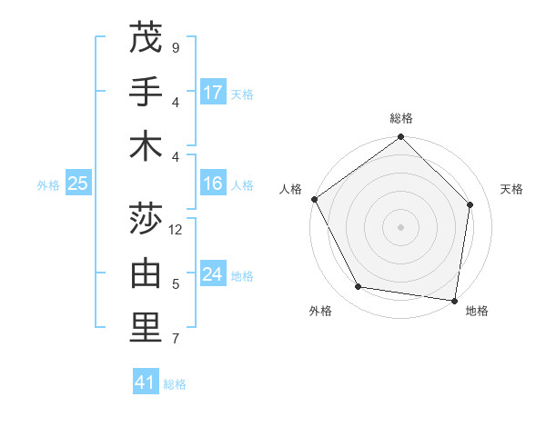 茂手木 莎由里さんを姓名の画数から五運を鑑定