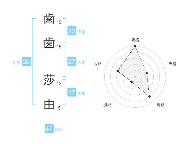 歯歯 莎由さんを姓名の画数から五運を鑑定