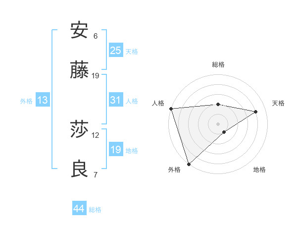 安藤 莎良さんを姓名の画数から五運を鑑定