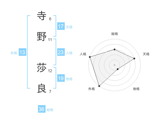 寺野 莎良さんを姓名の画数から五運を鑑定