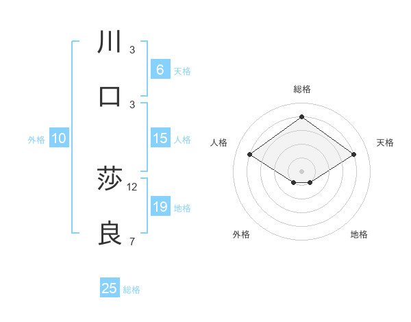 川口 莎良さんの総格は25画の4点!