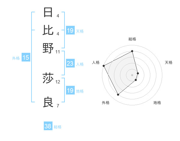 日比野 莎良さんの総格は38画の4点!