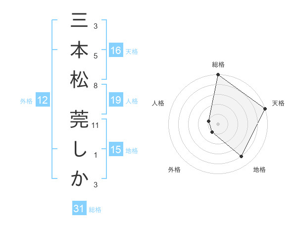 三本松 莞しかさんを姓名の画数から五運を鑑定