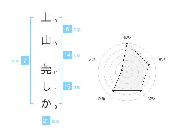 上山 莞しかさんを姓名の画数から五運を鑑定