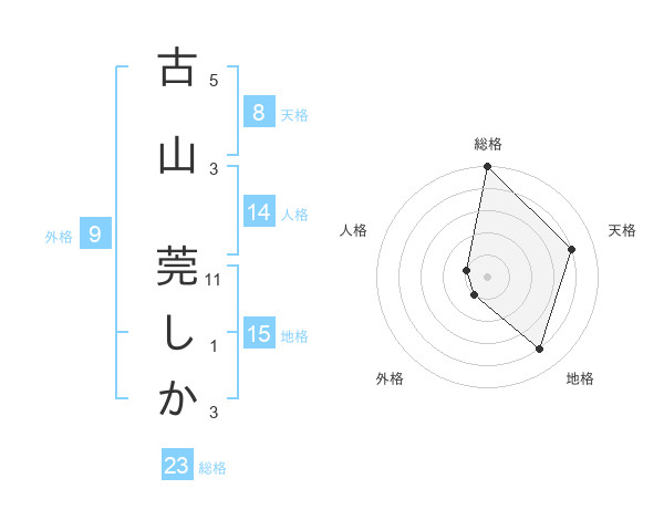古山 莞しかさんを姓名の画数から五運を鑑定