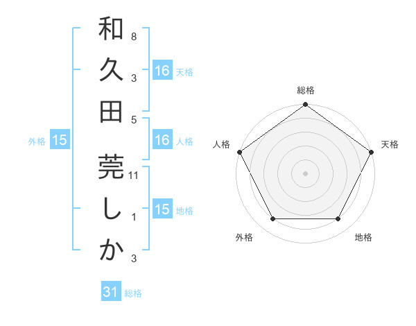 和久田 莞しかさんを姓名の画数から五運を鑑定