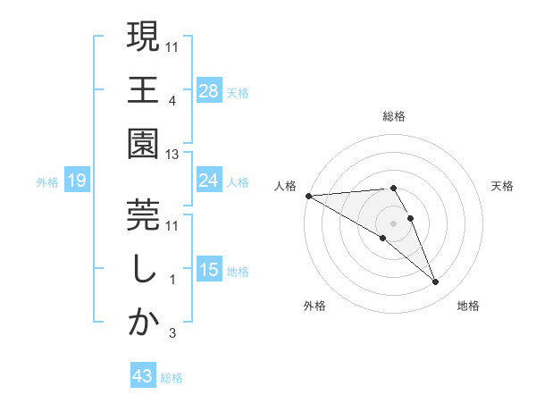 現王園 莞しかさんの総格は43画の2点!