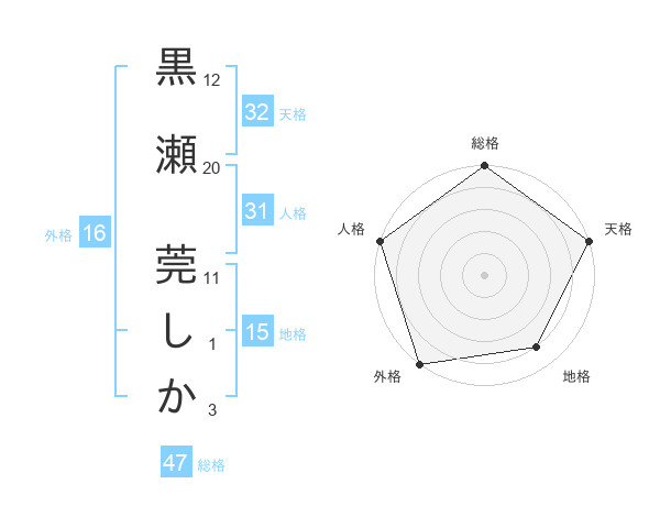 黒瀬 莞しかさんを姓名の画数から五運を鑑定