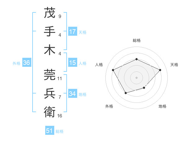 茂手木 莞兵衛さんを姓名の画数から五運を鑑定
