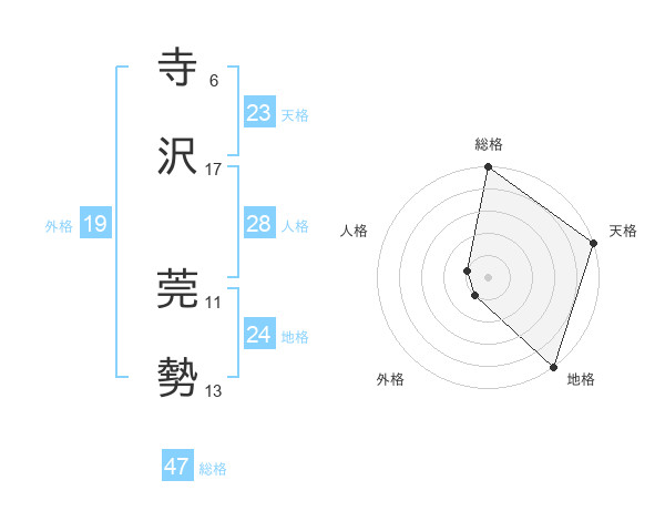 寺沢 莞勢さんの天格は23画の5点!