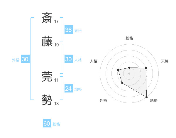斎藤 莞勢さんの総格は60画の1点!
