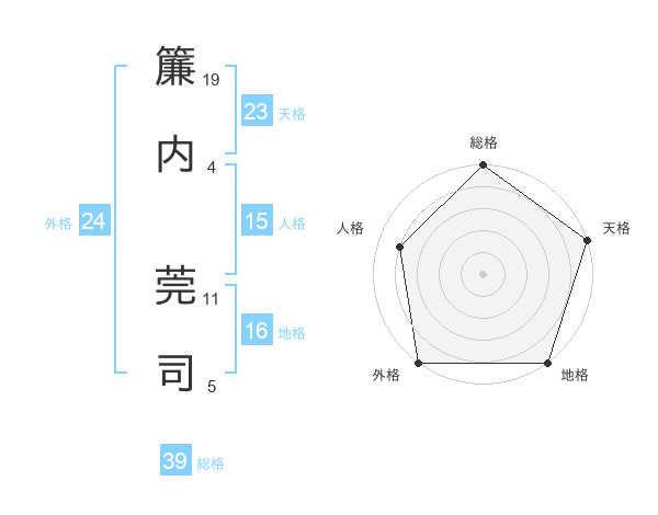 簾内 莞司さんを姓名の画数から五運を鑑定