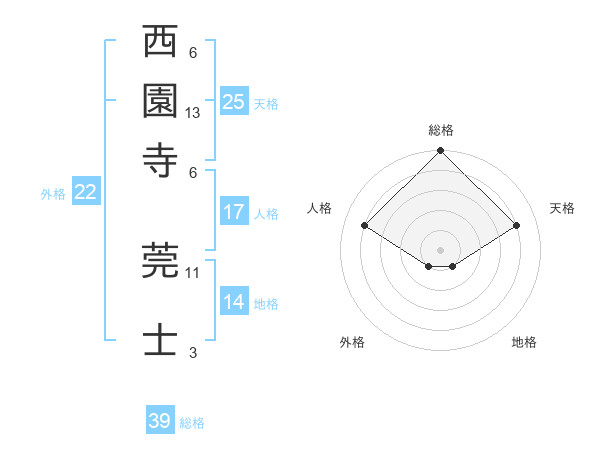 西園寺 莞士さんの地格は14画の1点!