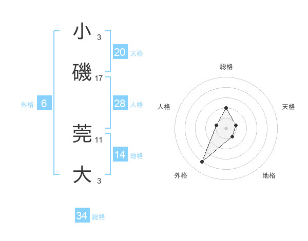 小磯 莞大さんを姓名の画数から五運を鑑定