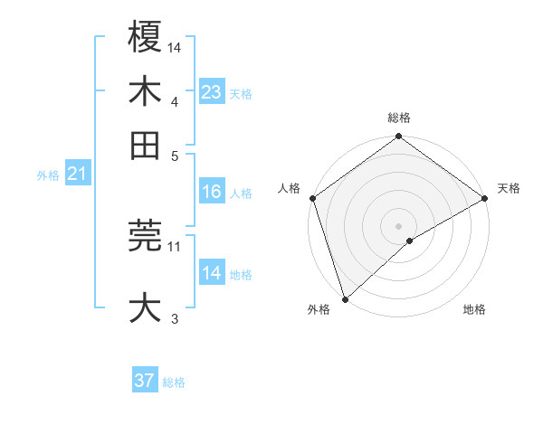 榎木田 莞大さんの総格は37画の5点!