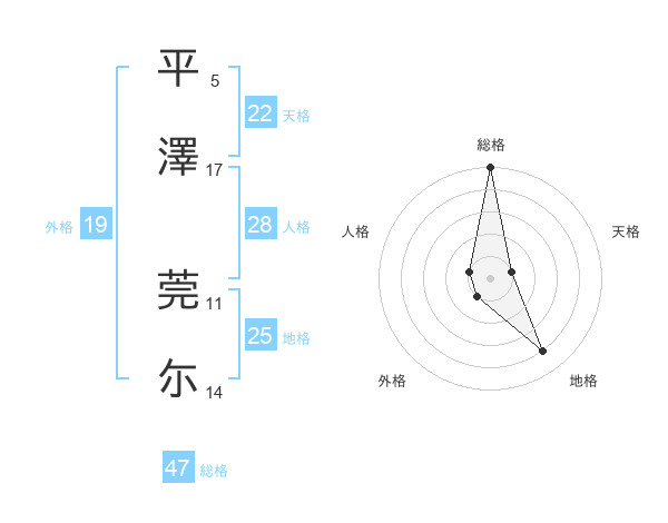 平澤 莞尓さんを姓名の画数から五運を鑑定