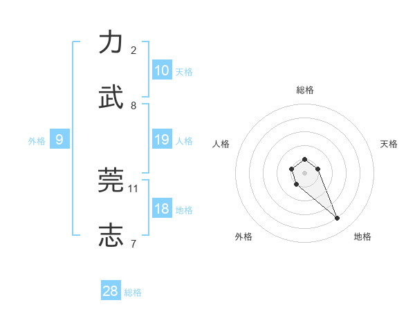 力武 莞志さんの総格は28画の1点!