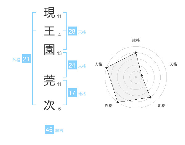 現王園 莞次さんを姓名の画数から五運を鑑定