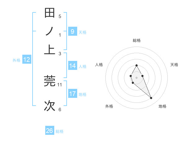 田ノ上 莞次さんを姓名の画数から五運を鑑定