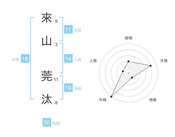 來山 莞汰さんの総格は30画の2点!