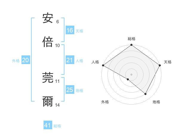 安倍 莞爾さんの総格は41画の5点!