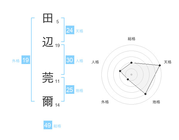 田辺 莞爾さんの天格は24画の5点!