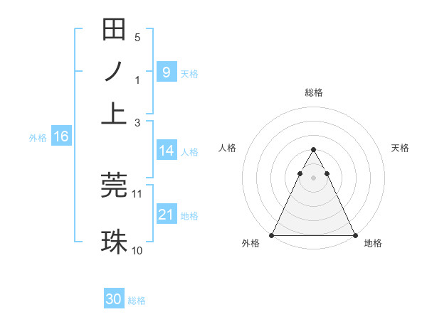 田ノ上 莞珠さんを姓名の画数から五運を鑑定