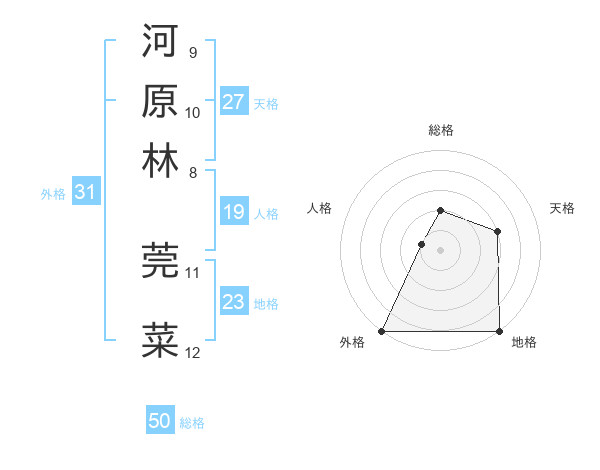 河原林 莞菜さんを姓名の画数から五運を鑑定