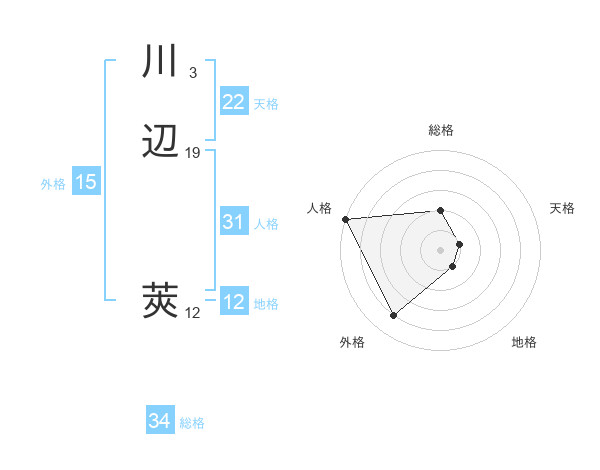 川辺 莢さんの天格は22画の1点!