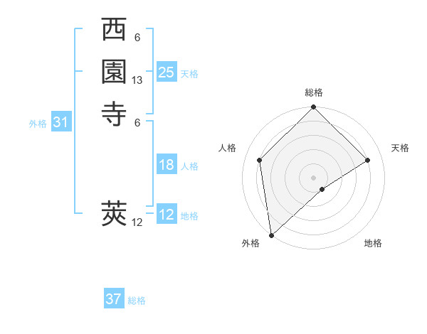 西園寺 莢さんを姓名の画数から五運を鑑定