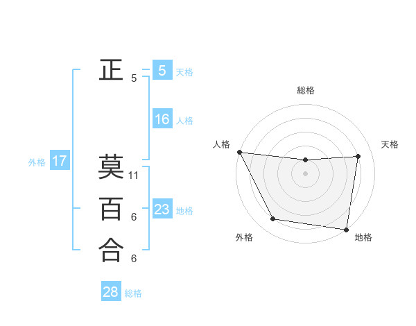 正 莫百合さんの地格は23画の5点!