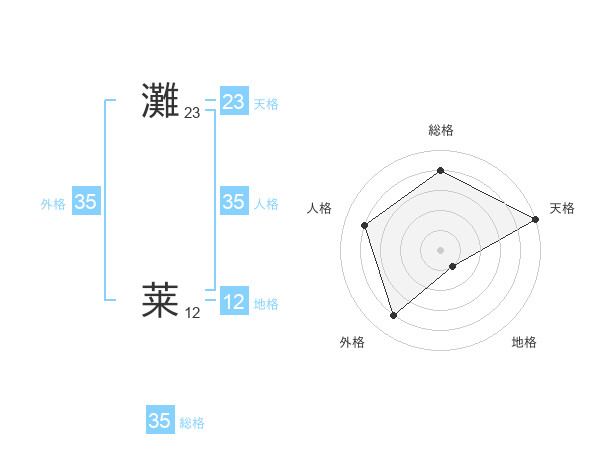 灘 莱さんの総格は35画の4点!