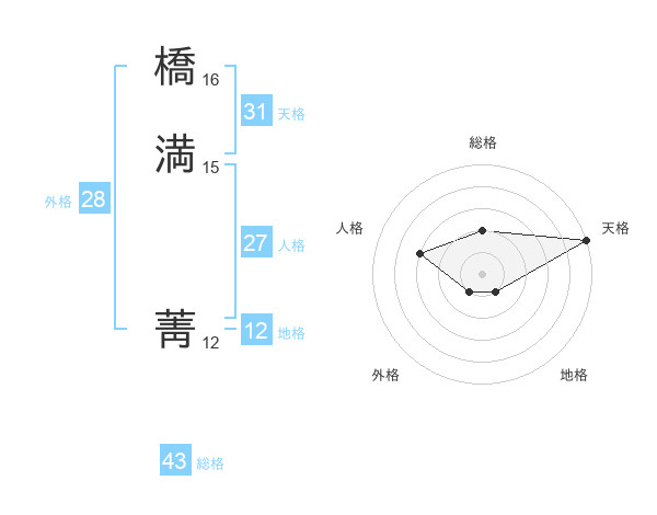 橋満 菁さんの天格は31画の5点!