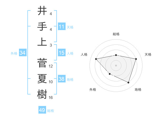 井手上 菅夏樹さんを姓名の画数から五運を鑑定