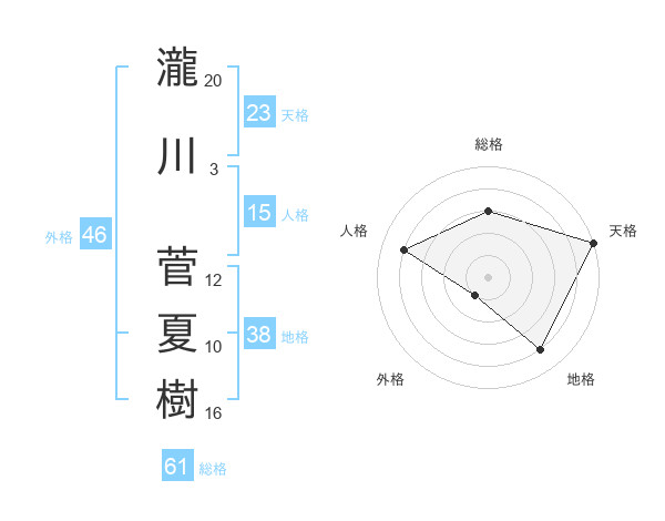 瀧川 菅夏樹さんの総格は61画の3点!