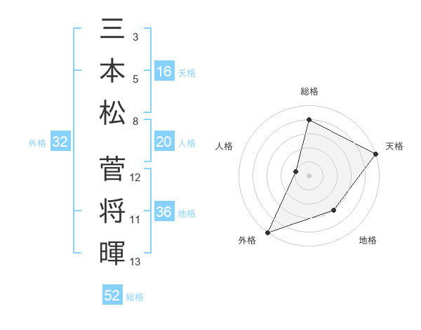 三本松 菅将暉さんを姓名の画数から五運を鑑定