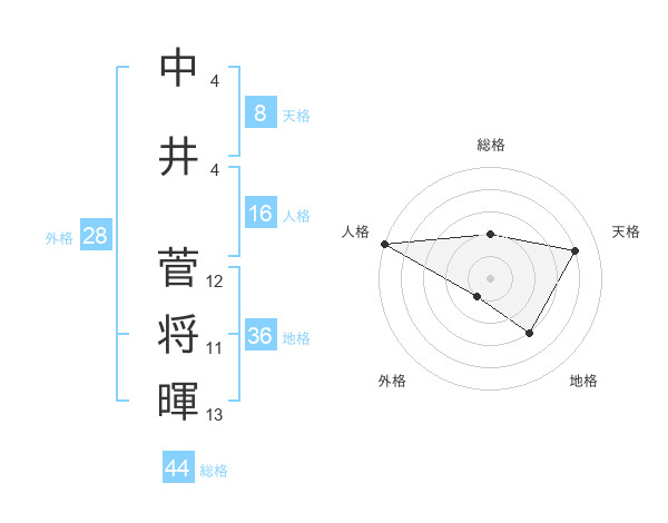 中井 菅将暉さんの総格は44画の2点!