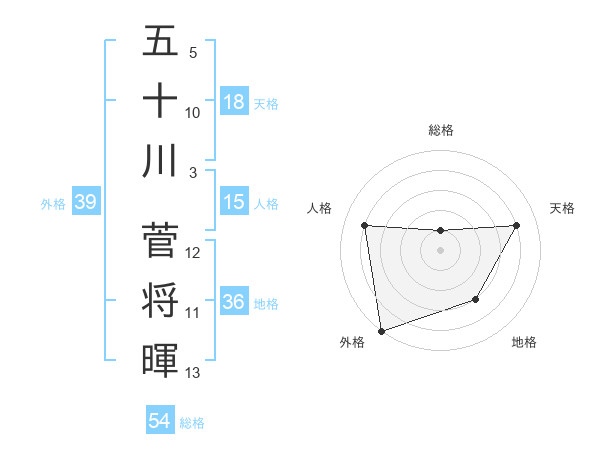 五十川 菅将暉さんを姓名の画数から五運を鑑定