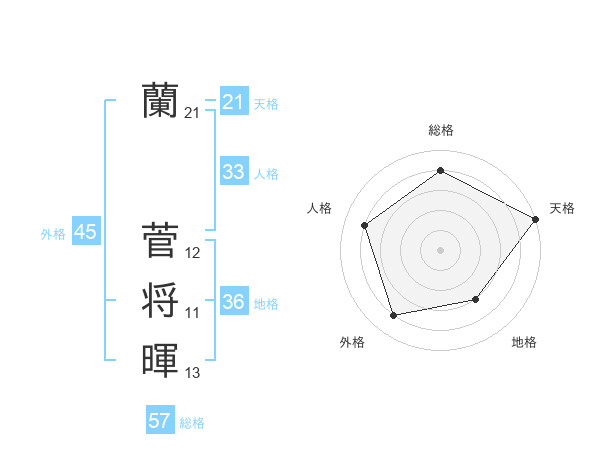 蘭 菅将暉さんの外格は45画の4点!