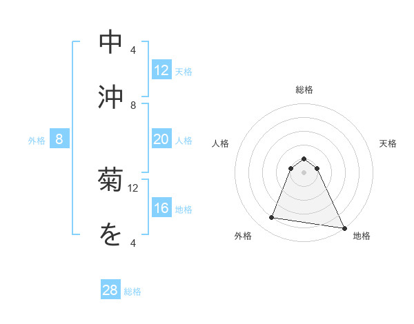 中沖 菊をさんを姓名の画数から五運を鑑定
