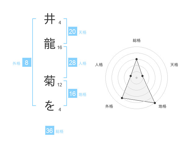 井龍 菊をさんを姓名の画数から五運を鑑定