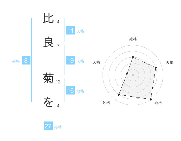 比良 菊をさんの総格は27画の3点!