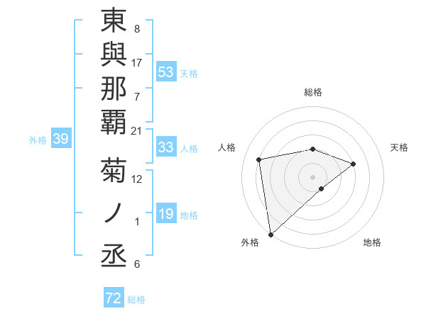 東與那覇 菊ノ丞さんの外格は39画の5点!