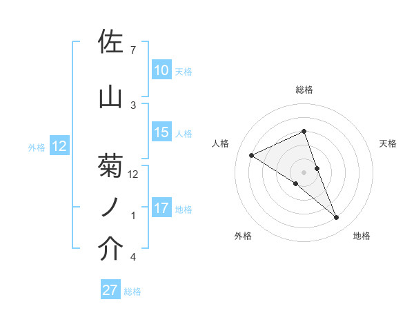佐山 菊ノ介さんを姓名の画数から五運を鑑定
