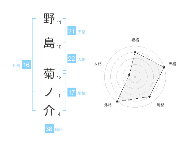 野島 菊ノ介さんを姓名の画数から五運を鑑定