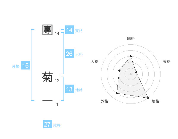 團 菊一さんの総格は27画の3点!