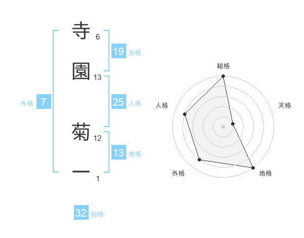 寺園 菊一さんの総格は32画の5点!