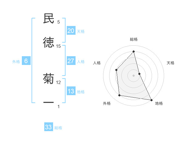 民徳 菊一さんの総格は33画の4点!